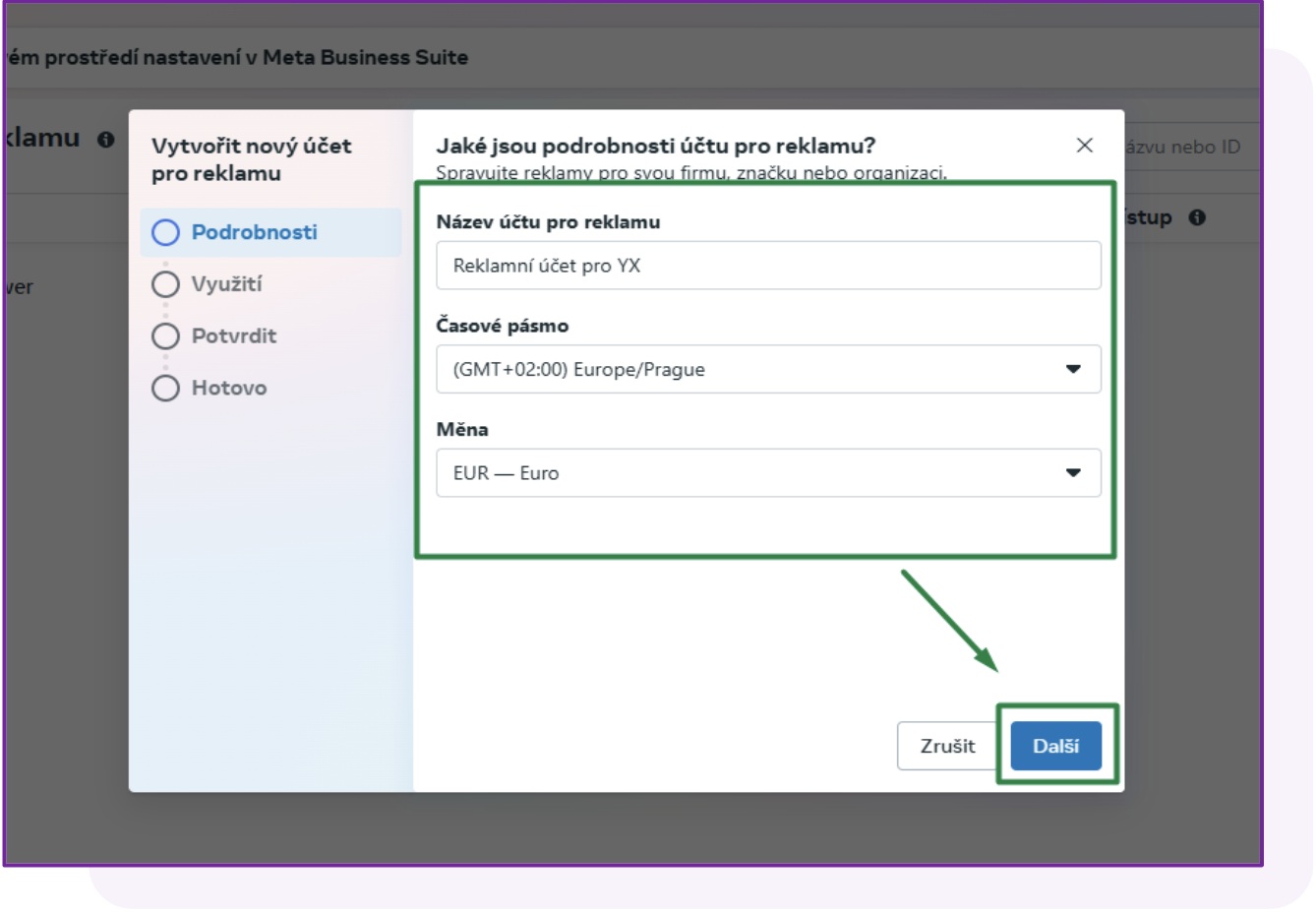 Alternativním řešením je vytvoření nového reklamního účtu s měnou nastavenou na eura: