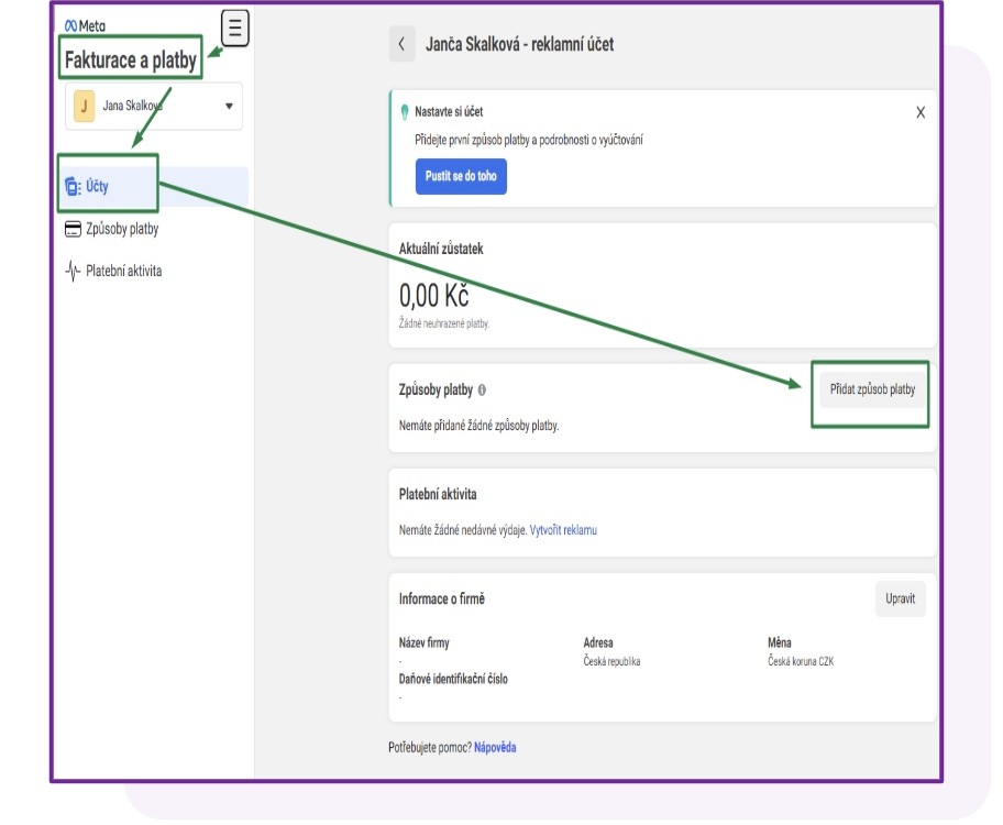 - Přejděte do Nastavení plateb ve vašem Business Manageru.